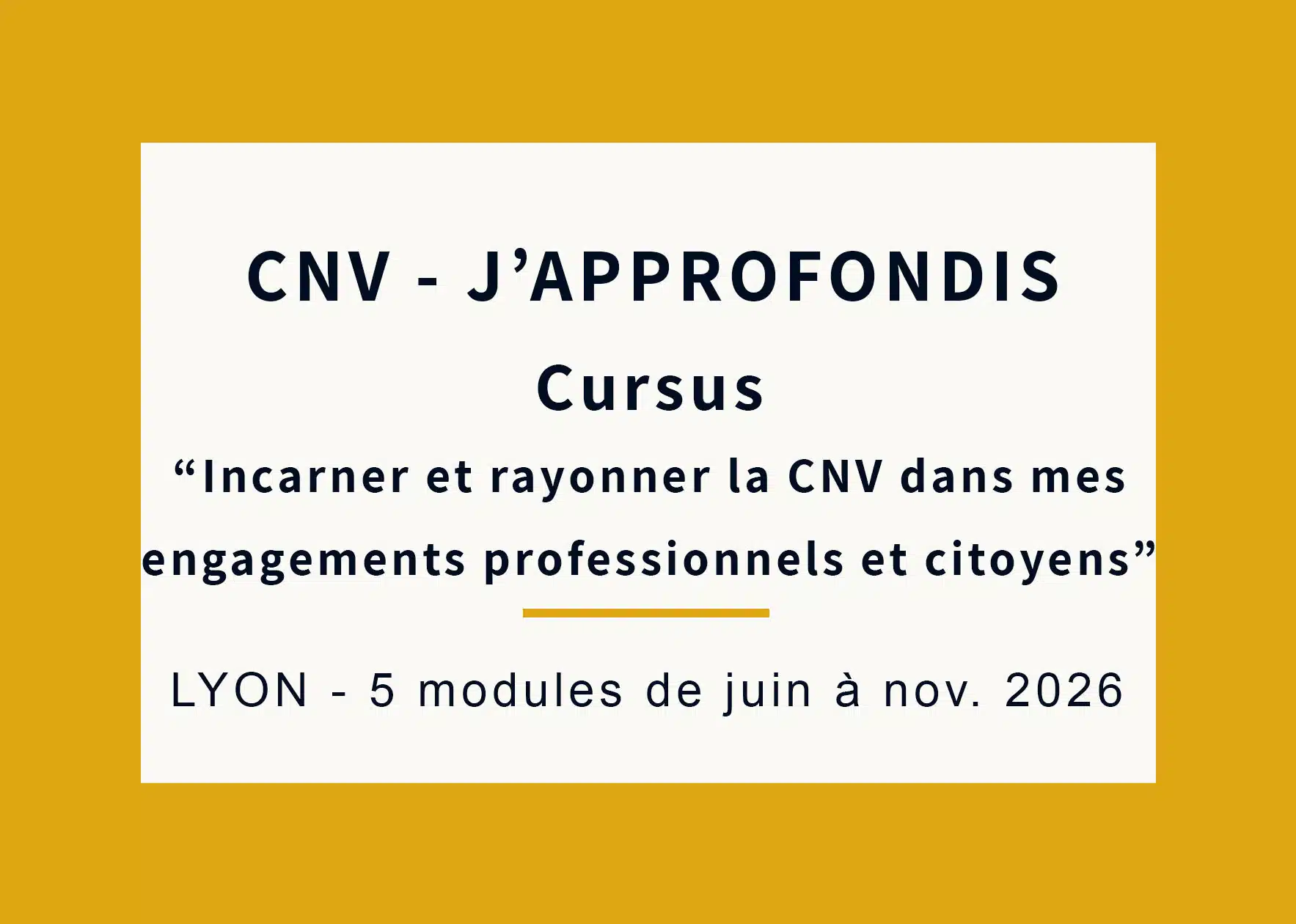 2 ans après avoir suivi cette formation, je peux témoigner combien ce cursus m’a soutenue dans mon intégration de la CNV au quotidien.